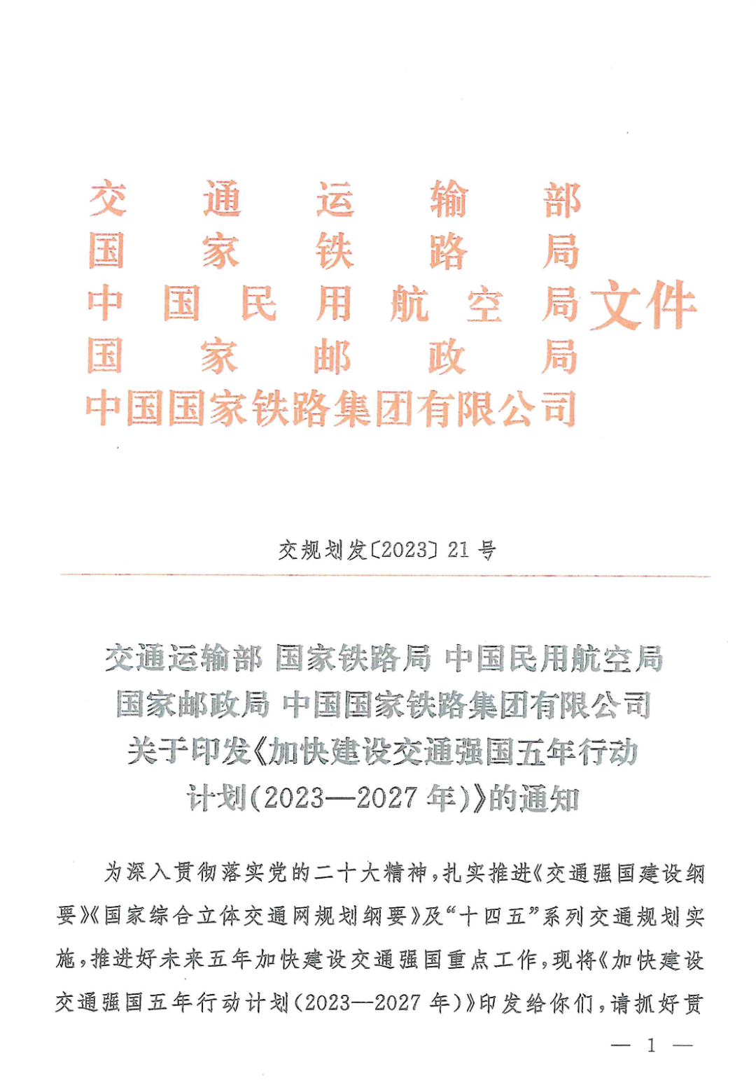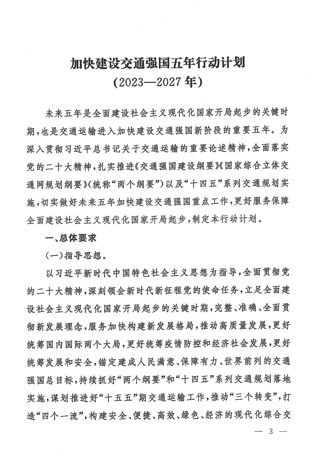 《加快建设交通强国五年行动计划(2023-2027年)》全文