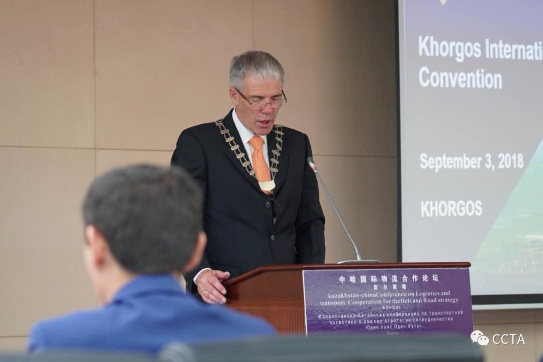 本次论坛就中国和哈萨克斯坦的物流业合作展开交流探讨,来自国际物流与运输学会的专家、学者和丝绸之路沿线物流企业负责人共聚一堂,以“共建丝绸之路大通道 共促国际物流大发展”主题进行了广泛深入交流,畅谈了各国各地围绕“一带一路”建设国际物流通道的成果,提出了一系列促进丝绸之路经济带沿线国际物流业发展的建设性意见。CILT国际会长Kevin Byrne先生、CILT总会秘书长Keith Newton先生、CILT中国分会会长王德荣先生、CILT哈萨克斯坦分会会长、哈萨克斯坦交通运输与通讯学院校长Bakytzhan Kuanyshev教授、江苏省徐州市人民政府副市长赵兴友先生、霍尔果斯政府市长杰恩斯.哈德斯等领导出席论坛并致辞。
