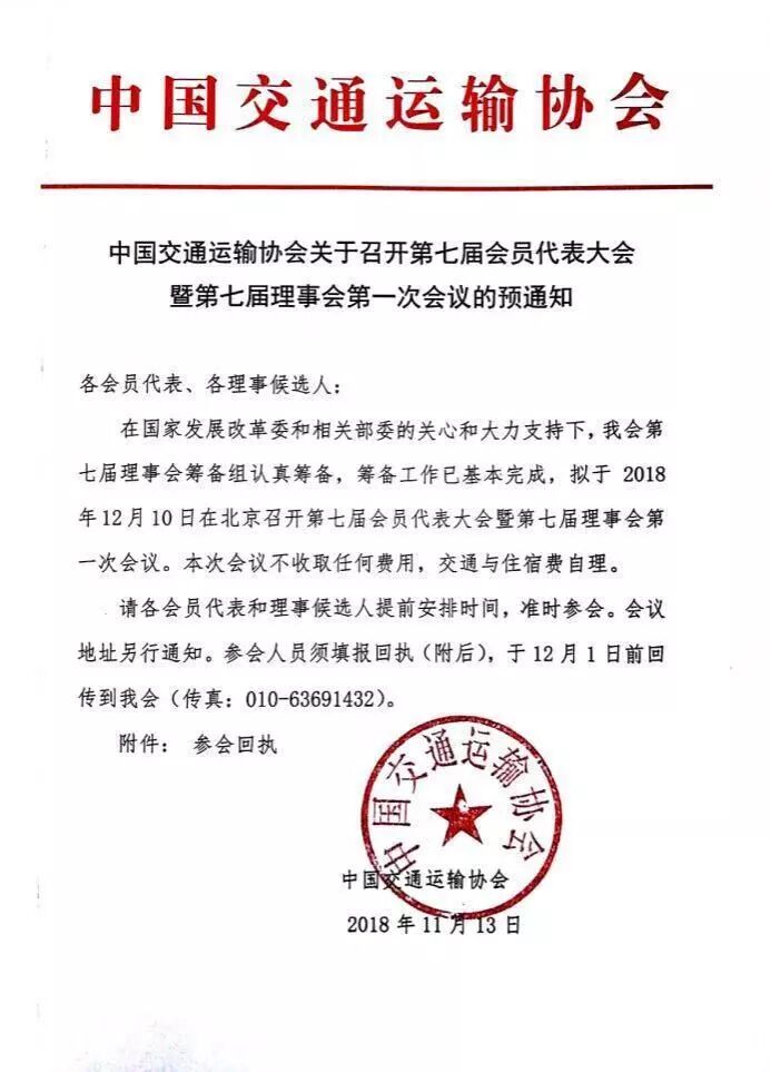 中国交通运输协会第七届会员代表大会暨第七届理事会第一次会议,将于12月10日在京隆重举行。