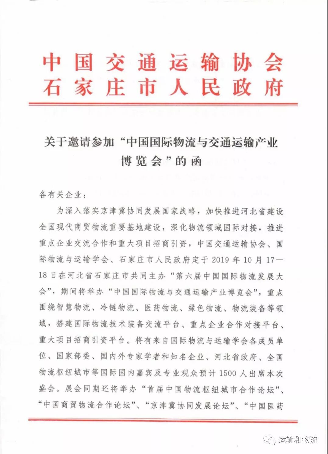 @物流人,您有一封中国国际物流与交通运输产业博览会的邀请函,请查阅